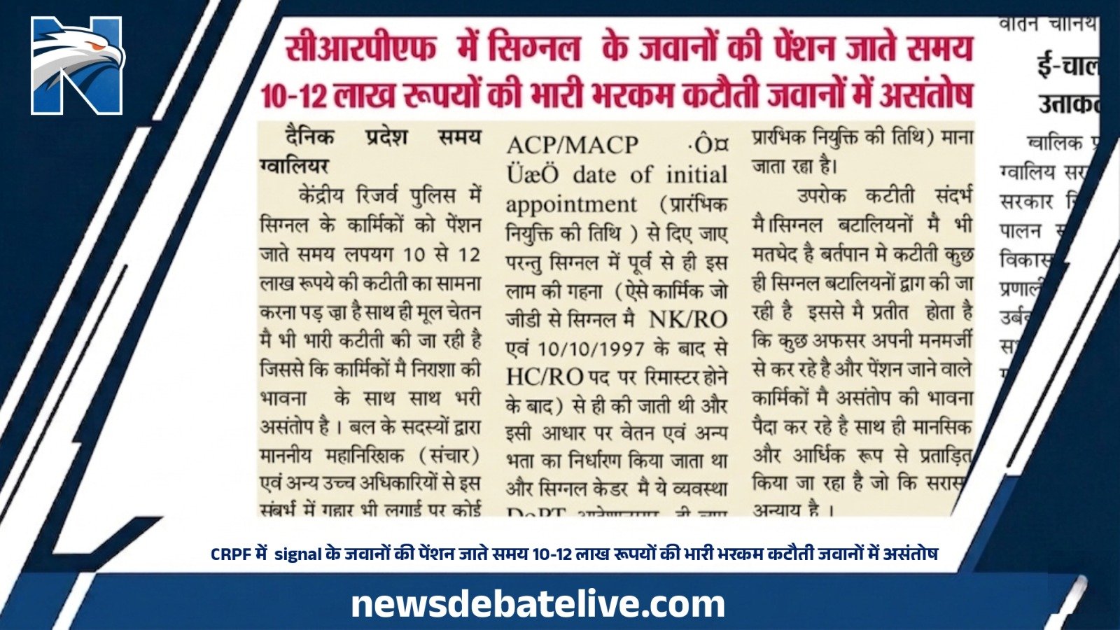 CRPF में सिग्नल के जवानों की पेंशन जाते समय 10-12 लाख रूपयों की भारी-भरकम कटौती, जवानों में असंतोष