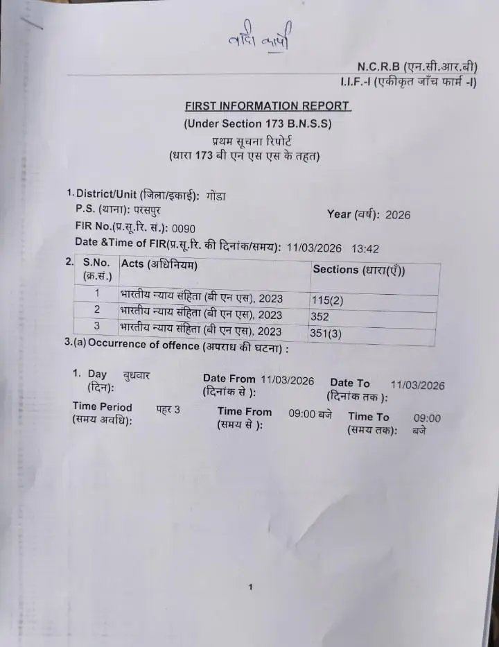 घटना के बाद पीड़ित पत्रकार ने परसपुर थाने पहुंचकर मामले की शिकायत दर्ज कराई। पुलिस ने तहरीर के आधार पर आरोपी सोनू यादव पुत्र सूरजपाल के खिलाफ भारतीय न्याय संहिता (BNS) की धारा 115(2), 351(3) और 352 के तहत मुकदमा दर्ज कर लिया है।